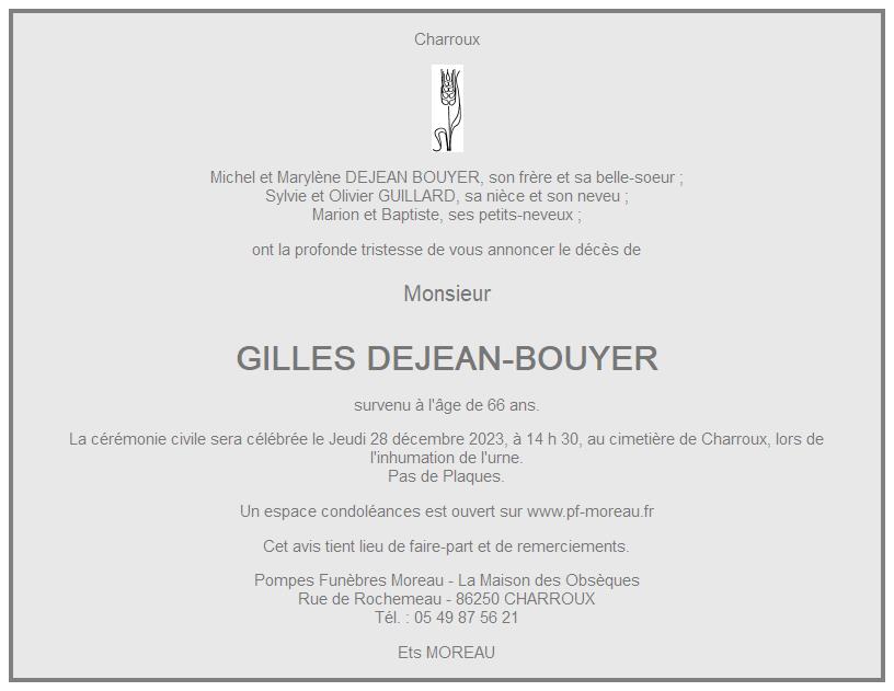 Cet espace « condoléances » est dédié à la mémoire de Monsieur GILLES DEJEAN-BOUYER.