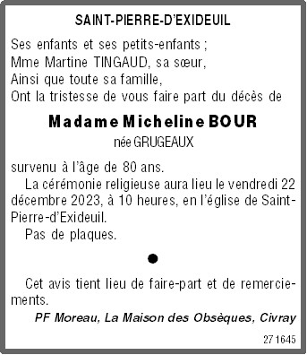 de Madame Odette BOUR née GRUGEAUX