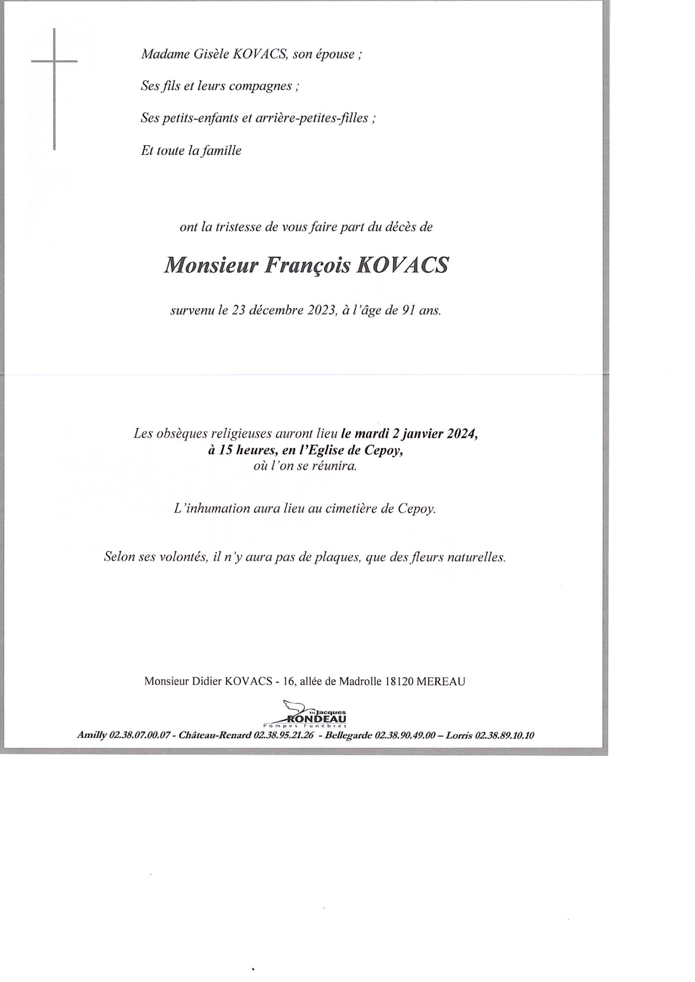 Cet espace « condoléances » est dédié à la mémoire de Monsieur François KOVACS.