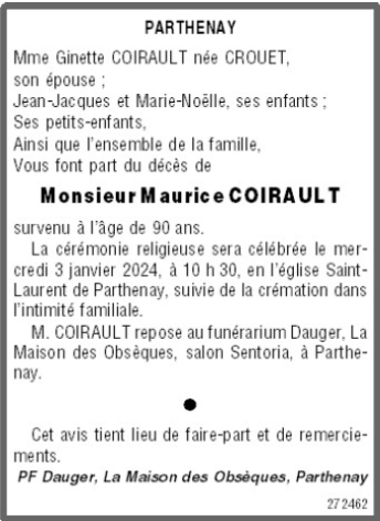 de Monsieur Maurice COIRAULT