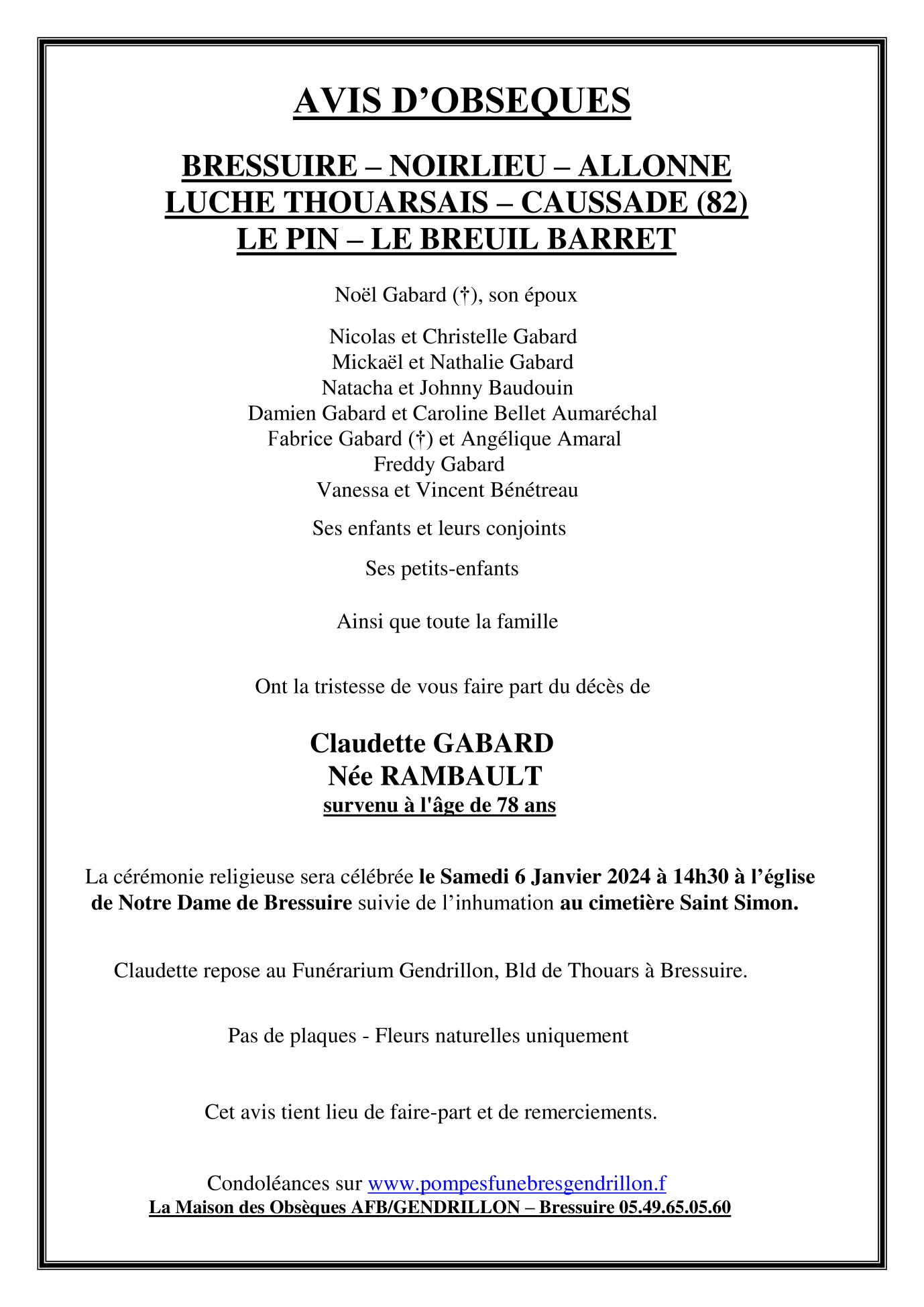 de Madame Claudette GABARD née RAMBAULT