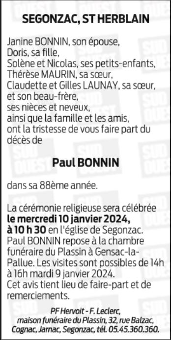 de Monsieur Paul BONNIN
