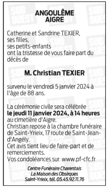 Cet espace « condoléances » est dédié à la mémoire de Monsieur Christian TEXIER.