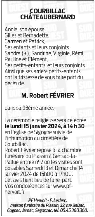 de Monsieur Robert FEVRIER
