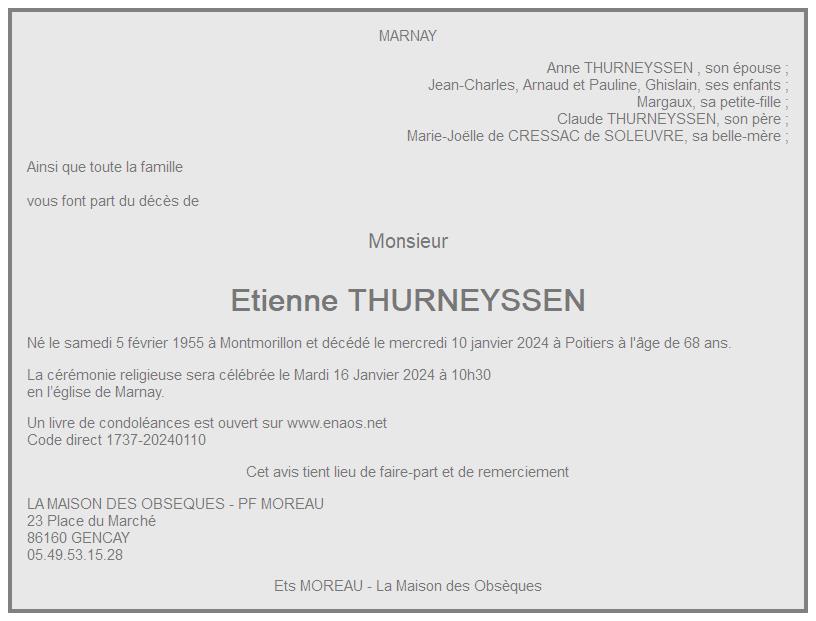 Cet espace « condoléances » est dédié à la mémoire de Monsieur Etienne THURNEYSSEN.