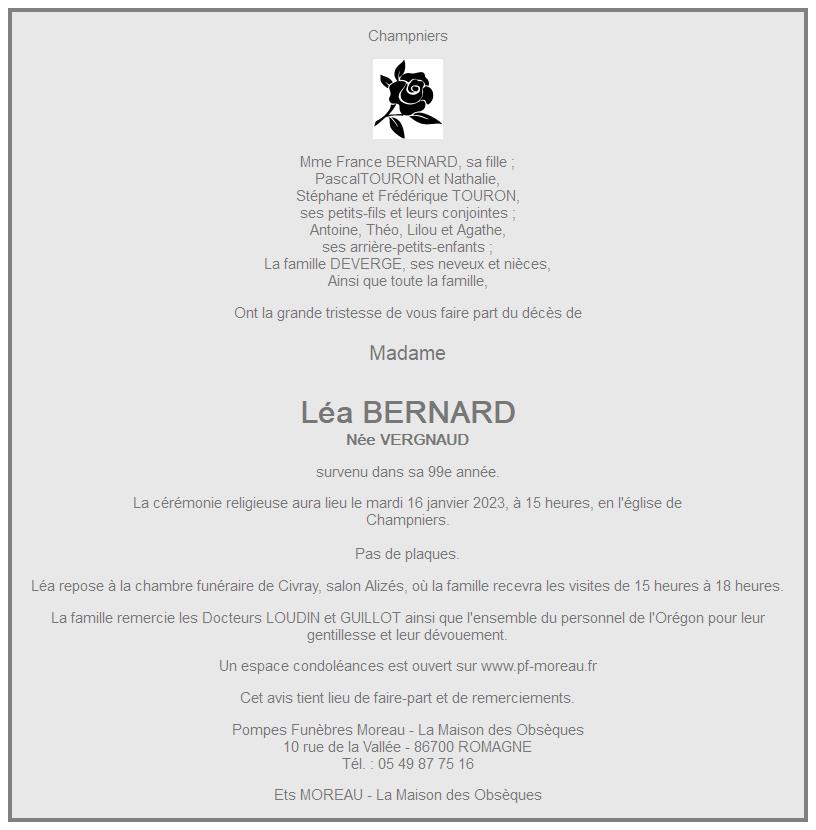 de Madame Léa BERNARD née VERGNAUD