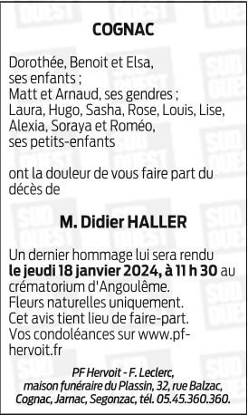 Cet espace « condoléances » est dédié à la mémoire de Monsieur Didier HALLER.