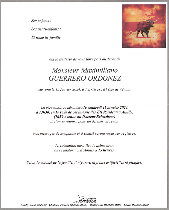 Cet espace « condoléances » est dédié à la mémoire de Monsieur Maximiliano GUERRERO ORDONEZ.