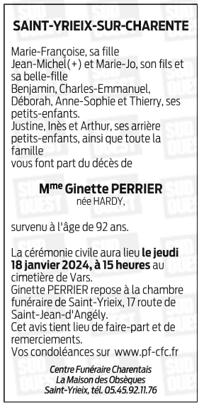 de Madame Ginette PERRIER née HARDY