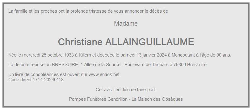 de Madame Christiane PERNET-SOLLIET née ALLAINGUILLAUME