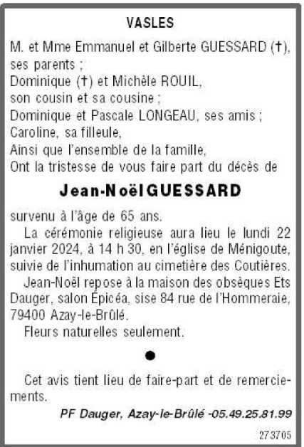 Cet espace « condoléances » est dédié à la mémoire de Monsieur Jean-Noël GUESSARD.