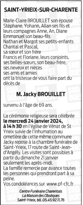 Cet espace « condoléances » est dédié à la mémoire de Monsieur Jacques BROUILLET.