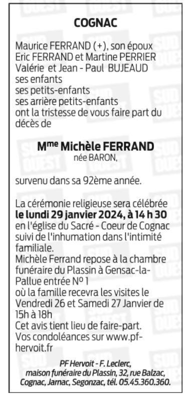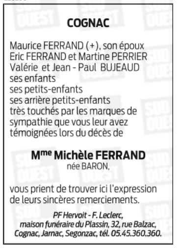 de Madame Michèle FERRAND née BARON