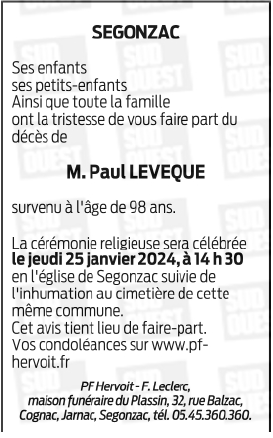 de Monsieur Paul LEVEQUE