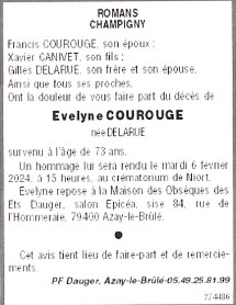 Cet espace « condoléances » est dédié à la mémoire de Madame Evelyne COUROUGE née DELARUE.
