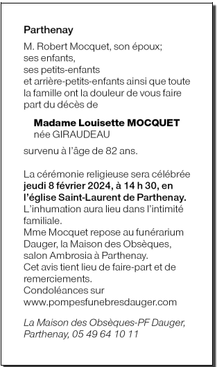 de Madame Louisette MOCQUET née GIRAUDEAU