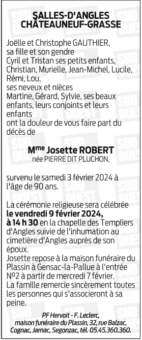 de Madame Josette ROBERT née PIERRE DIT PLUCHON