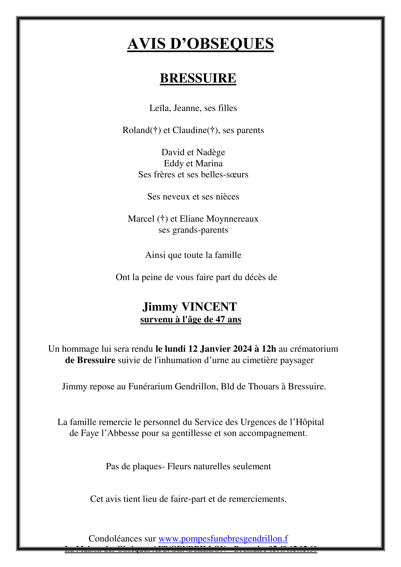 Cet espace « condoléances » est dédié à la mémoire de Monsieur Jimmy VINCENT-NOPRE.