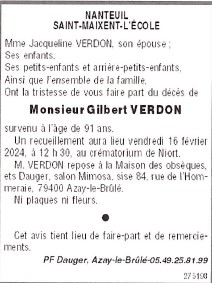 de Monsieur Gilbert Roland Julien VERDON