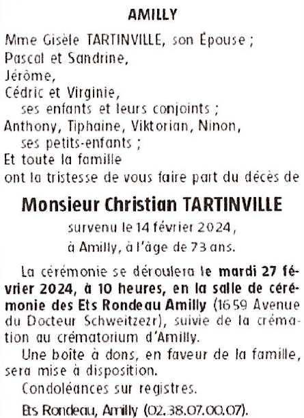Cet espace « condoléances » est dédié à la mémoire de Monsieur Christian TARTINVILLE.