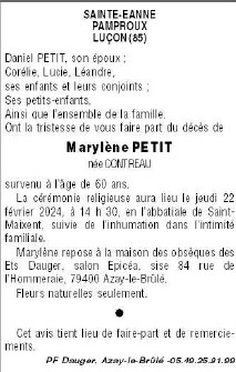 de Madame Marylène Françoise PETIT née CONTREAU