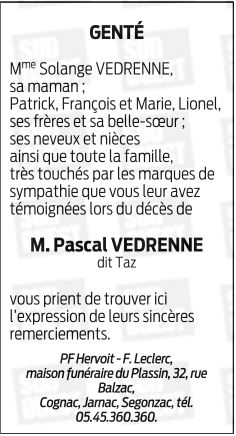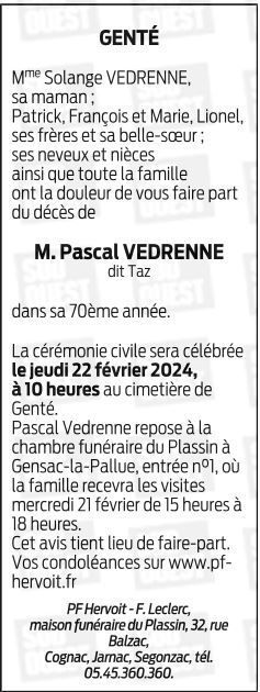 Cet espace « condoléances » est dédié à la mémoire de Monsieur Pascal VEDRENNE.