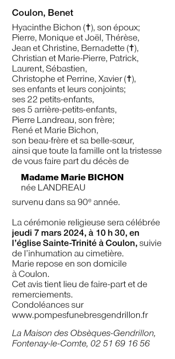 de Madame Marie BICHON née LANDREAU