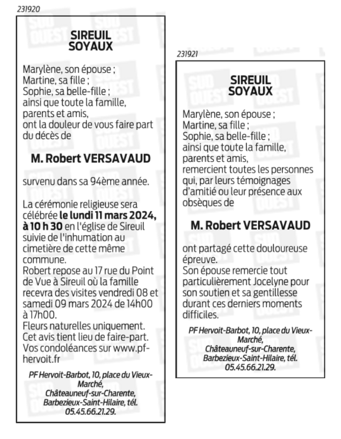 Cet espace « condoléances » est dédié à la mémoire de Monsieur Robert VERSAVAUD.