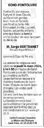 Décédé à Saint-Yrieix-sur-Charente (16710) le vendredi 8 mars 2024