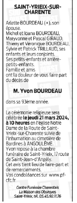 Décédé à Saint-Michel (16470) le vendredi 15 mars 2024