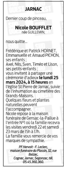 de Madame Nicole BOUFFLET née GUILLEMIN