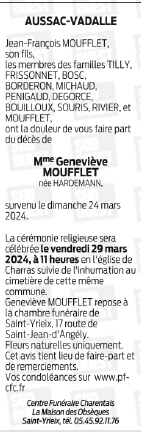 Décédée à Saint-Michel (16470) le dimanche 24 mars 2024
