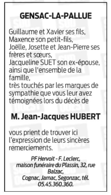 Cet espace « condoléances » est dédié à la mémoire de Monsieur Jean HUBERT.