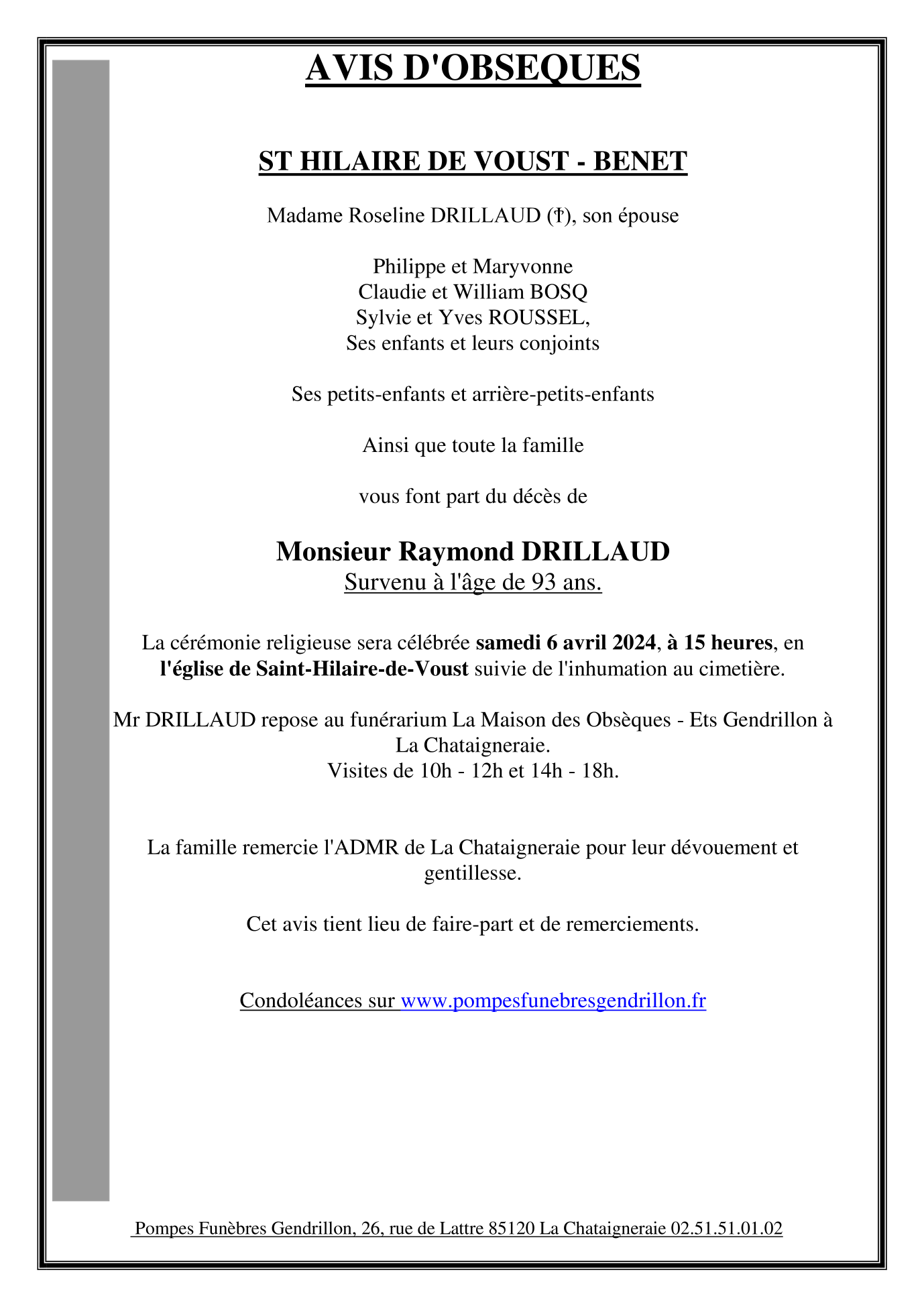 de Monsieur Raymond DRILLAUD