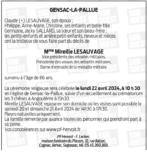 de Madame Mireille LESAUVAGE née DELESALLE