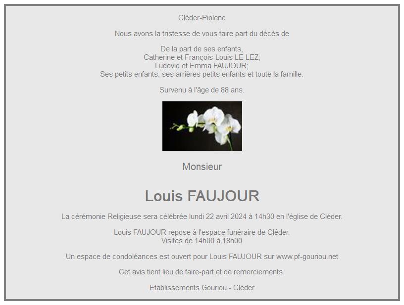 Cet espace « condoléances » est dédié à la mémoire de Monsieur Louis FAUJOUR.