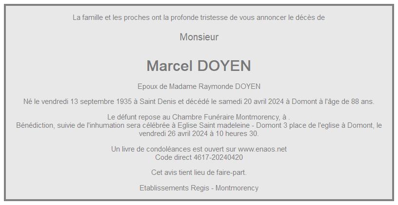 Cet espace « condoléances » est dédié à la mémoire de Monsieur Marcel DOYEN.