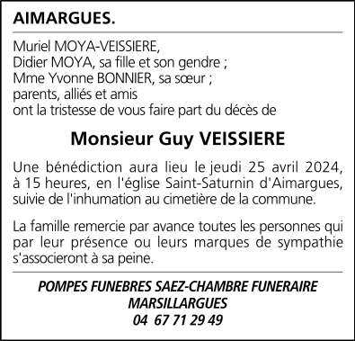 Cet espace « condoléances » est dédié à la mémoire de Monsieur Guy VEISSIERE.