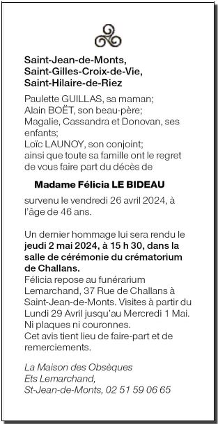 de Madame Félicia LE BIDEAU