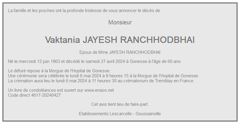 de Monsieur Vaktania JAYESH RANCHHODBHAI