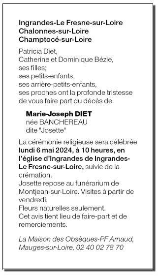 de Madame Marie-Joseph DIET née BANCHEREAU