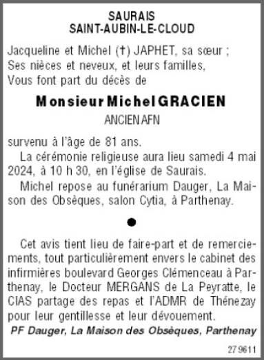 de Monsieur Michel GRACIEN
