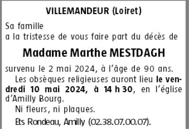 de Madame Marthe MESTDAGH