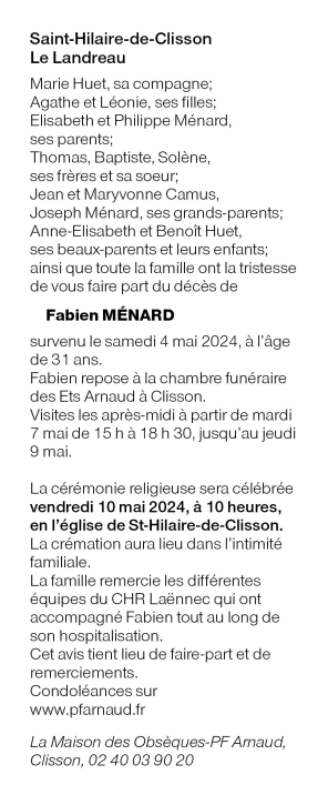 Cet espace « condoléances » est dédié à la mémoire de Monsieur Fabien MÉNARD.