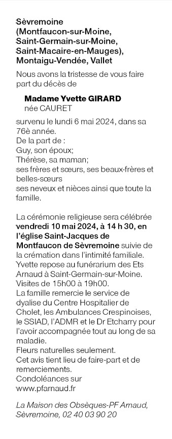 de Madame Yvette GIRARD née CAURET