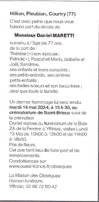Cet espace « condoléances » est dédié à la mémoire de Monsieur Daniel MARETTI.