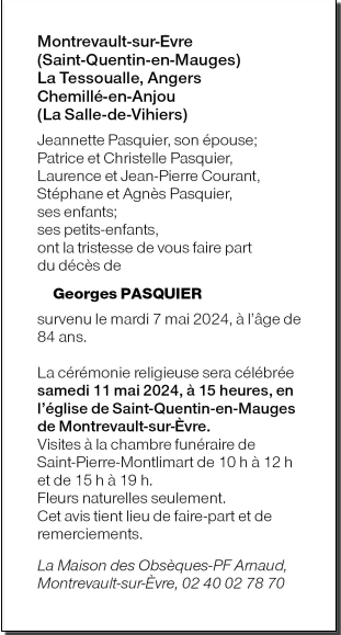 Cet espace « condoléances » est dédié à la mémoire de Monsieur Georges PASQUIER.