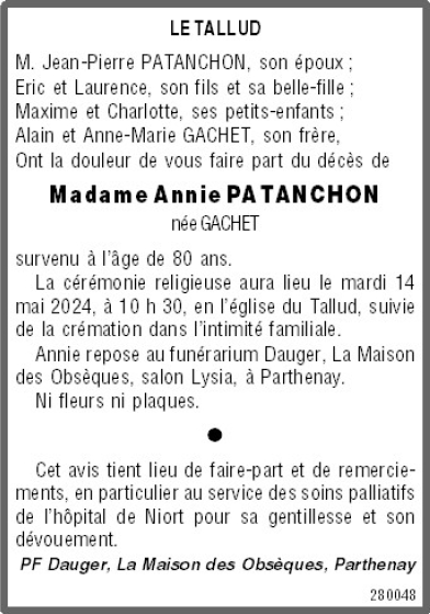 de Madame Françoise PATANCHON née GACHET