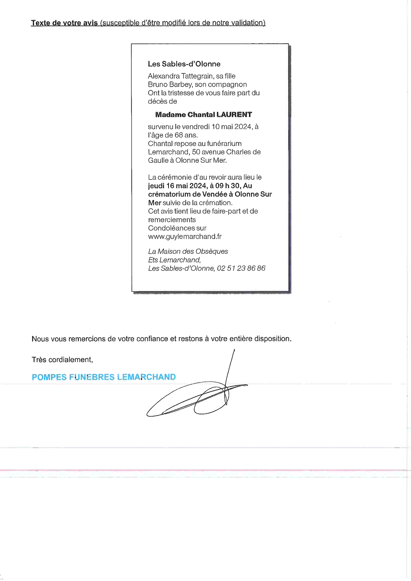 Cet espace « condoléances » est dédié à la mémoire de Madame Chantal LAURENT.