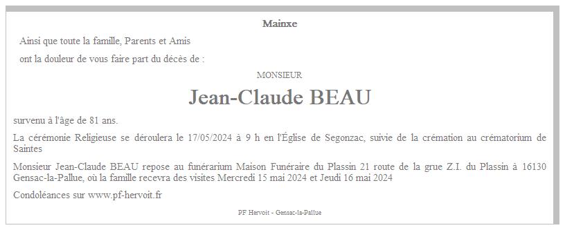 de Monsieur Jean-Claude BEAU